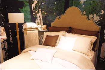 由于茶纤维天然呈米棕色,该款床品没有经过漂染,因此颜色是自然的茶色,大方整洁,与其他几款温馨、富贵感的床品不同,彰显了低调含蓄之美。“我们这款产品所营造的感觉是雅致而不是华贵,华丽是高端产品的一种表现,而低调的品质感同样是高端的一个表达方式。他们搭配不同的家具,显出不同的氛围。现在,高端客户并不一定喜欢特别高调的产品,反而这样颜色素雅,款式简单的很受欢迎。”董继红这样说。